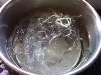 2. 然後加入椰糖,小火煮溶。煮至燕菜絲和椰糖。