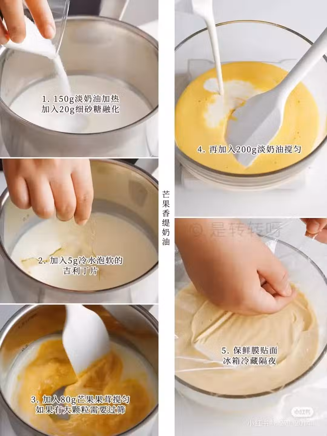 芒果蛋糕🥭滿滿香甜果味,✏️燙麵蛋糕坯做法