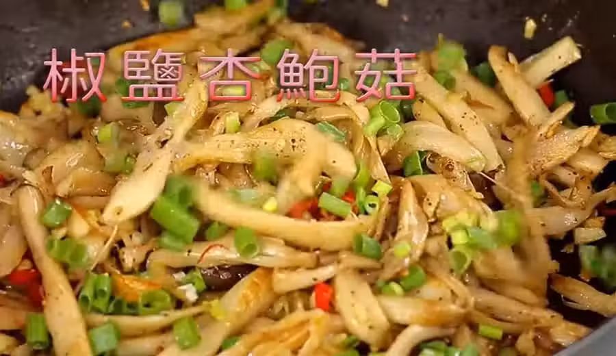 今天要和大家介紹杏鮑菇的美味吃法,就是這道椒鹽杏鮑菇簡單做又好下飯喔,在處裡整根杏鮑菇時,有別於常見的滾刀式切法,而是用手撕的方式將杏鮑菇順著紋理撕成肉絲狀,再以乾鍋慢慢煸至水分釋出,這時候要有耐心慢慢炒,美味是值得等待的直到杏鮑菇體積縮小而聞到香氣時,放入蒜末、蔥白、辣椒拌炒入味,撒上椒鹽簡單做調味,就超級好吃了。