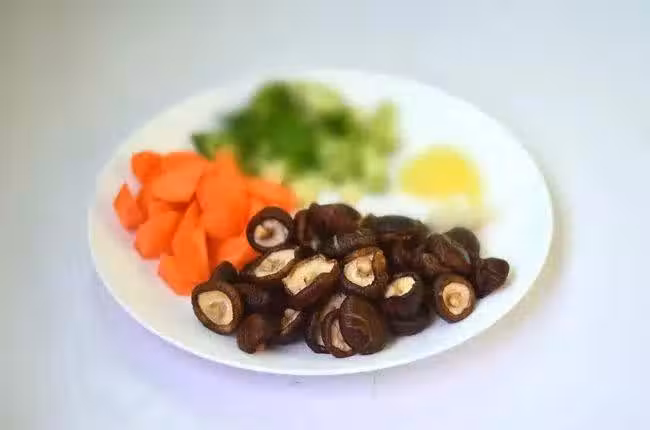 食材:胡蘿蔔,豆腐,香菇,木耳,鹽、胡椒粉,植物油,香油