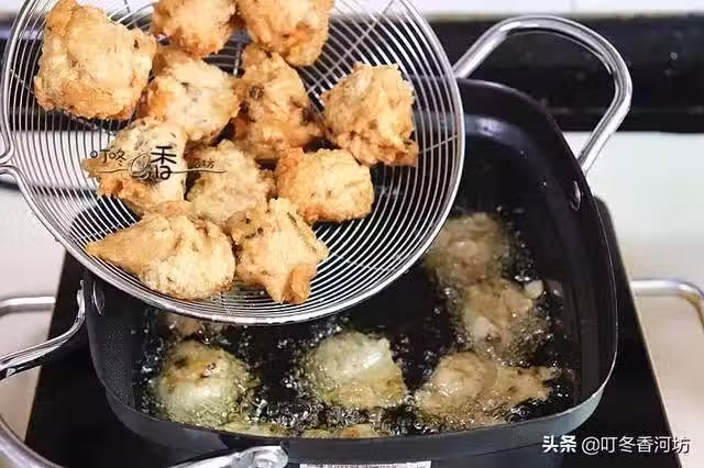 3、油溫要控制在160都左右,如果油溫太高會炸糊,太低不酥脆。