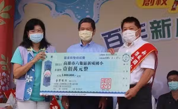 高市新威國小傑出校友廖燿堂(右)回饋鄉裡, 捐贈100萬整修校內圖書館,