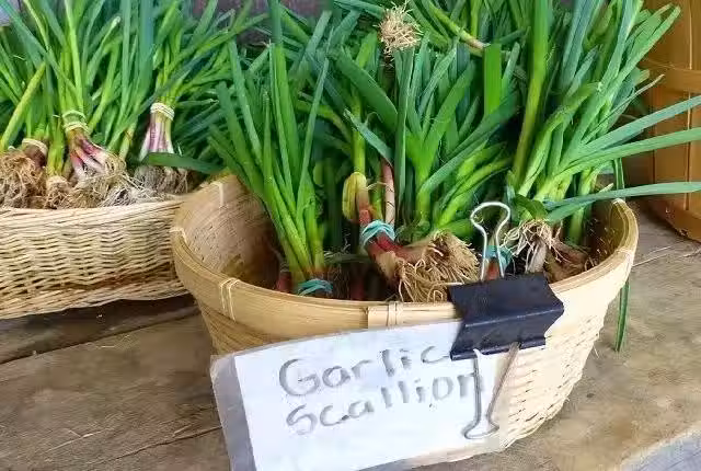 等到蒜苗枯萎,就可以看到裡面的蒜啦。