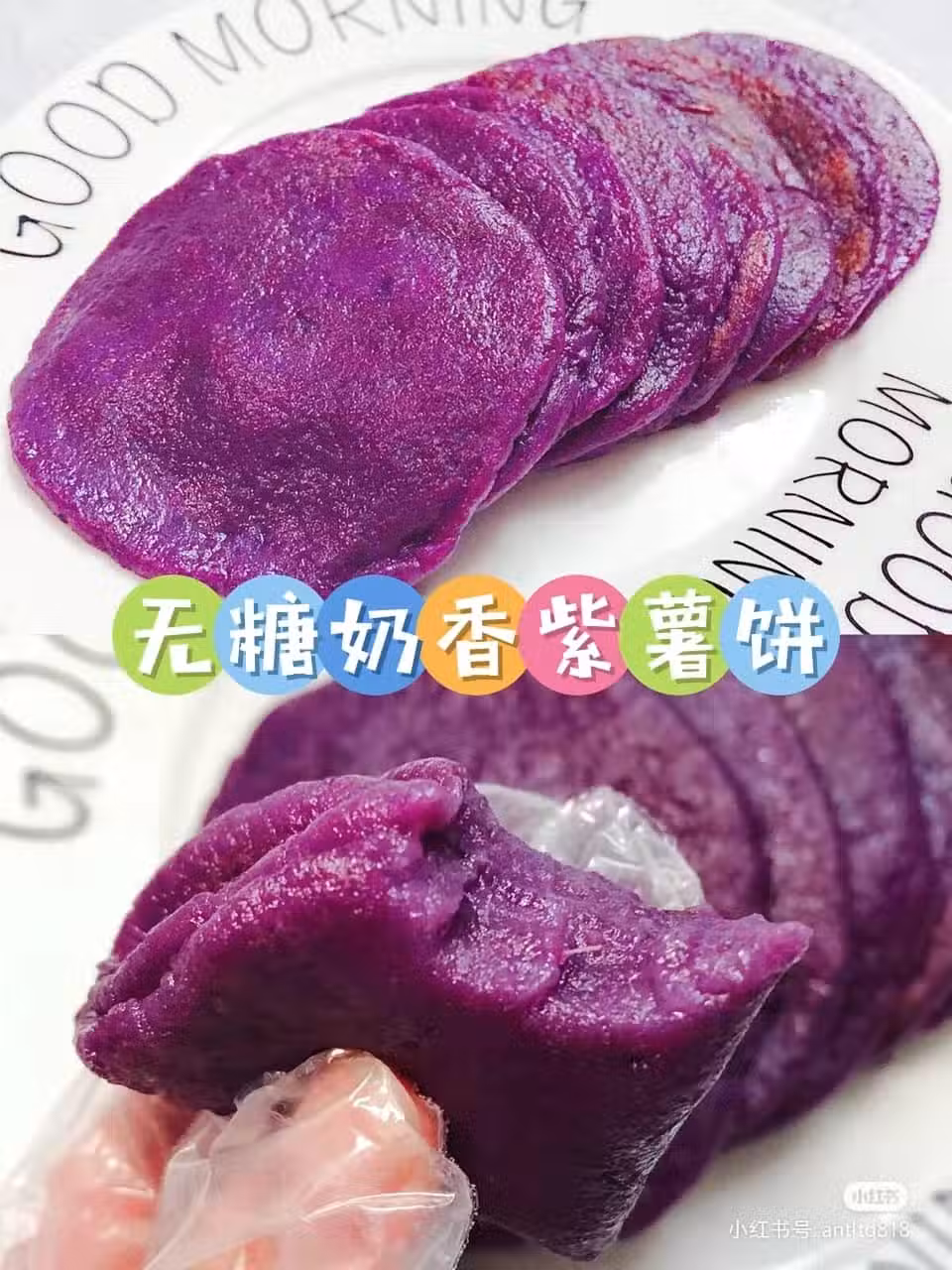 今天早餐我們來吃 無糖奶香紫薯餅 超級軟糯的口感