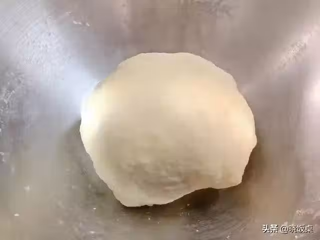 2、麵糰揉好以後,加入軟化好的黃油,繼續揉,直到將麵糰揉出厚膜即可。