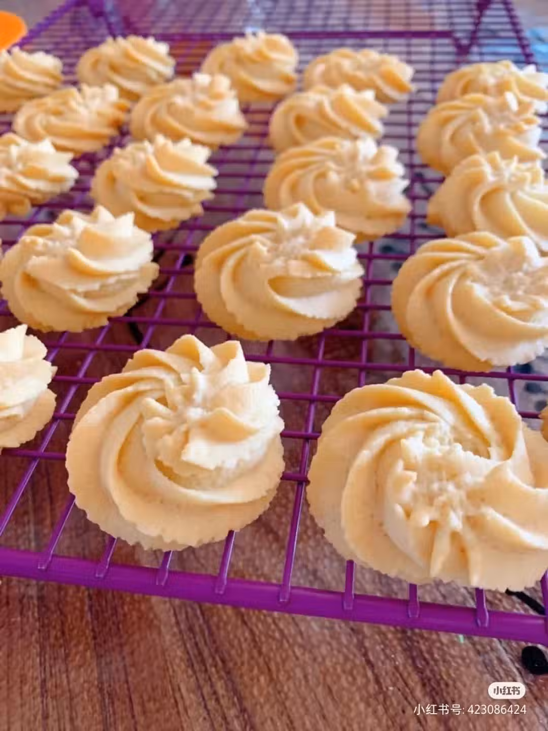 🌈擠花的時候裱花嘴離烤盤2厘米左右高度,太低了花紋會不清晰。