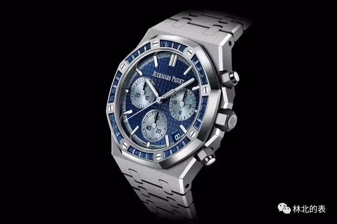 這一次還專門為日本市場推出了一個特別白金藍武士橡樹計時款,型號:26240BC.SS.1320BC.01。鑲嵌從鑽石變成了藍寶石,主題就是日本藍武士,懂足球的朋友想必都知道。機芯換成了70小時的4401機芯。2023年5月起日本市場獨售,之後在2023年7月起世界銷售。