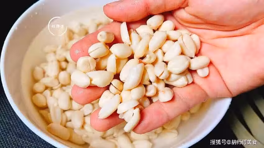 第一步:首先將去皮的花生仁浸泡6小時,時間到後,將花生仁撈出,再用流水將花生仁沖洗乾淨即可備用。