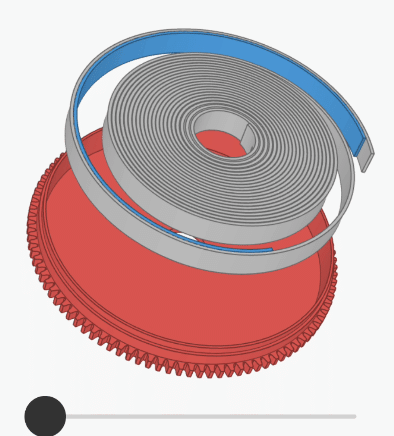 但是,在這種狀態下,主發條無法發揮任何作用——它已經擴展到可能的最大尺寸。為了在其中儲存更多能量,我們需要使用連接在主發條內側的心軸將其緊緊纏繞: