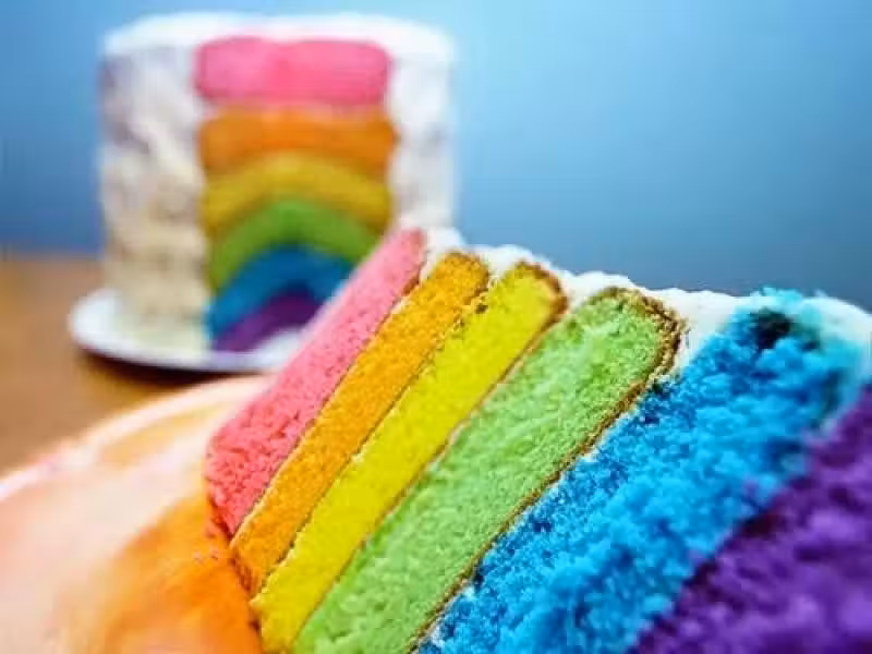 6 準備好7寸活底脫模,倒入第一種顏色、抹平;再倒入第二種顏色、抹平