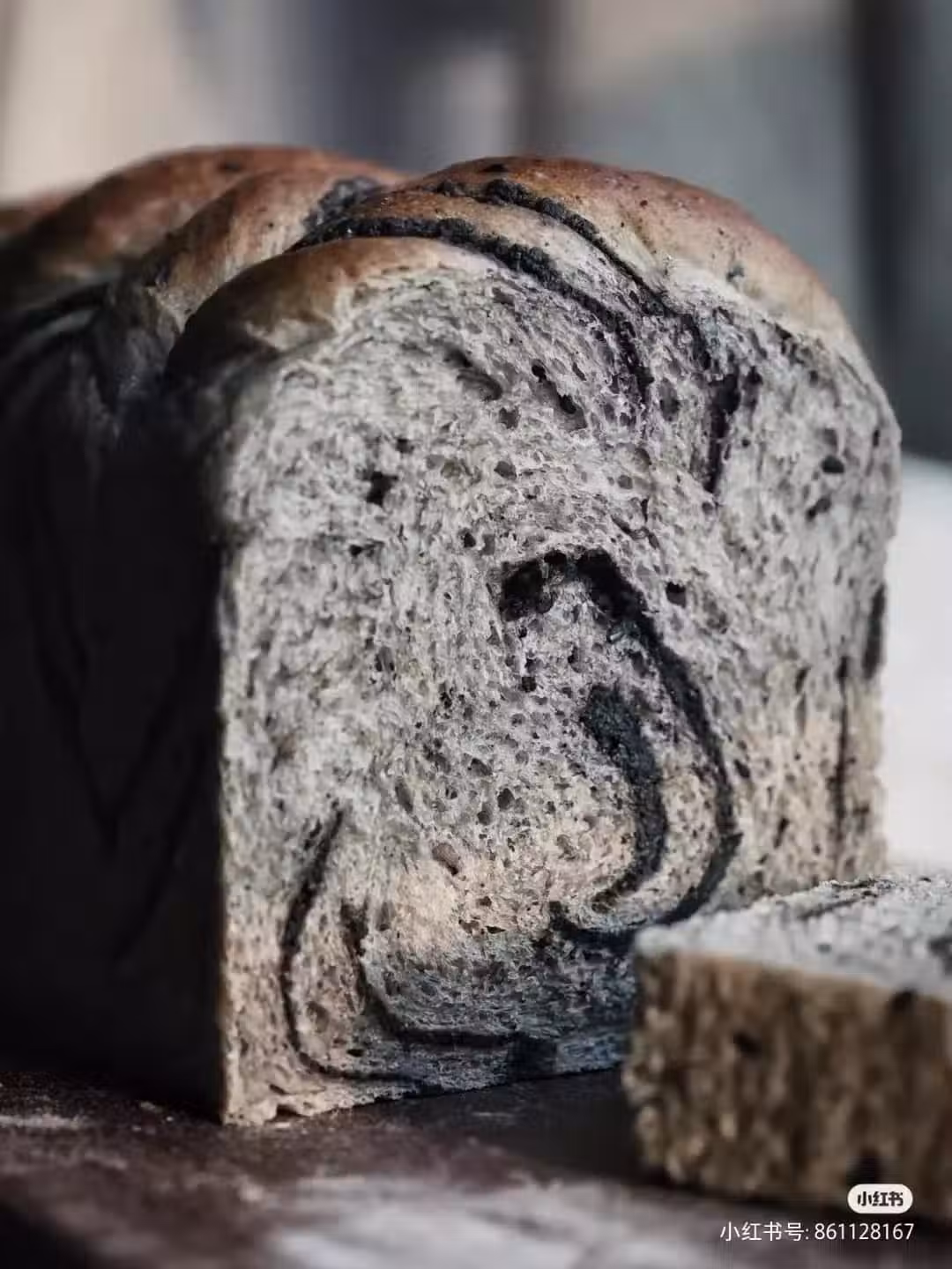 好看到治癒的黑芝麻大理石吐司,烘培日常