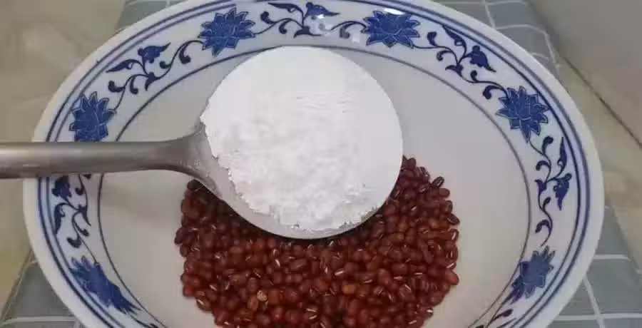 紅豆放入碗內,加入涼水洗淨,倒出洗淨的紅豆水。