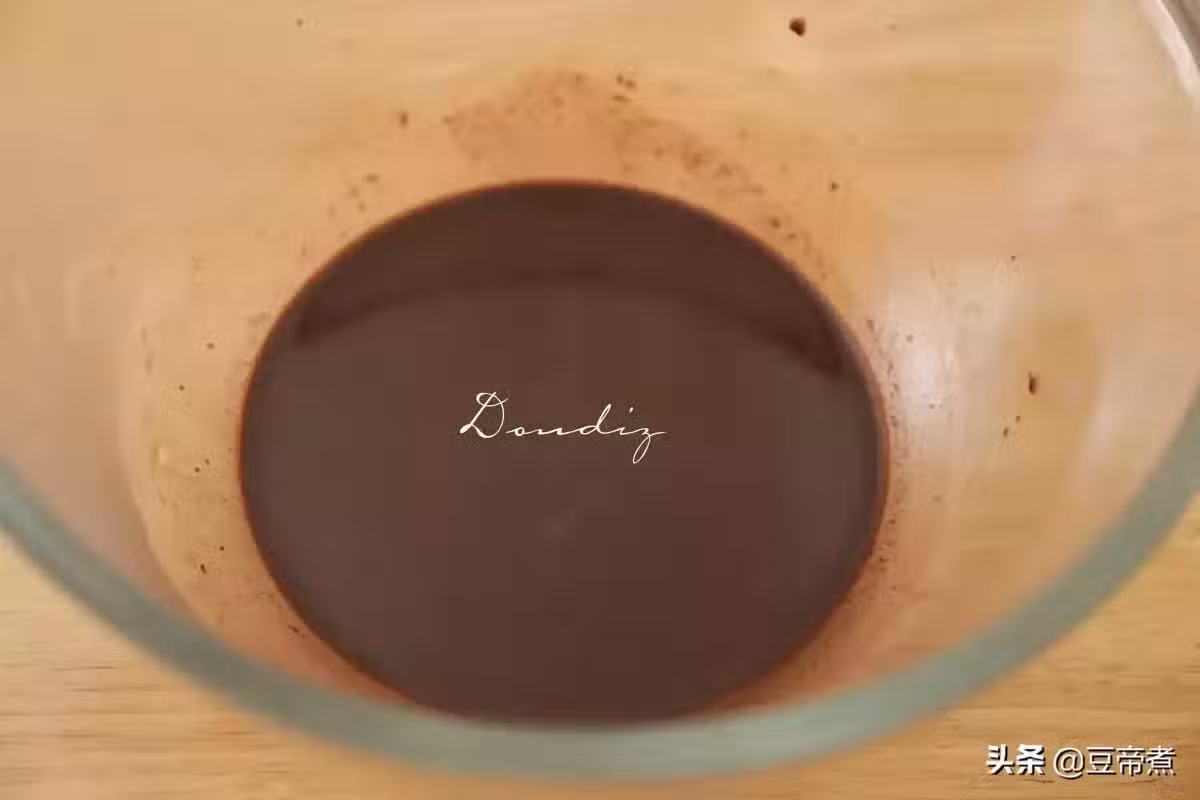 1、把定量的可可粉倒入盆中,加入所需要的熱水順時針攪拌至可可粉完全融化然後放涼備用。