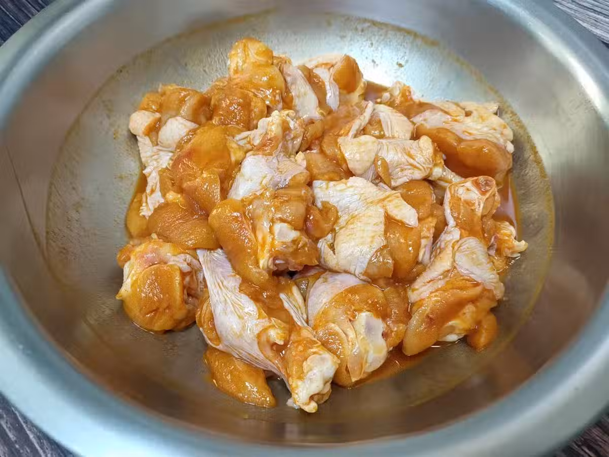 醃制雞翅根時,除了加醃料,還要加適量的清水,這是炸雞肉質鮮嫩多汁的關鍵。