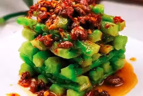 300g苦瓜、適量糖、適量雞精、1大勺老乾媽辣醬、適量香醋。
