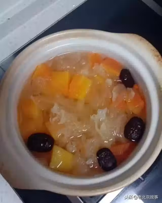 木瓜;銀耳朵;紅棗顆;枸杞粒;冰糖克