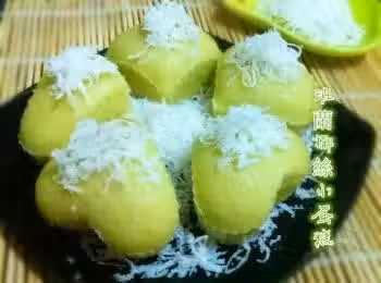 食材:自發粉【 Self-Raising Flour】150g、蛋3粒、白砂糖100g、濃縮班蘭汁2大匙、濃縮椰汁80g、椰絲約1小碗、鹽巴少許