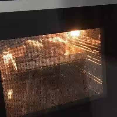 12、烤箱提前預熱200度10分鐘,把五花肉放入烤箱中層上下火200度烘烤20分鐘左右。