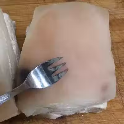 5、用叉子或者竹牙籤在豬皮表層戳滿小洞洞滲出多餘的油脂、去掉多餘的油脂這樣烤出來的皮會更酥脆。