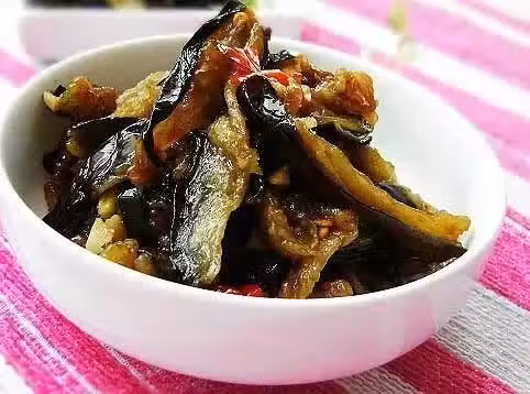 1.茄子洗凈,切條,放入鹽水中浸泡十分鐘,撈出。