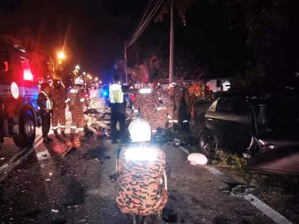 在強大的撞擊力下,涉案轎車被撞得毀不成形,兩輛轎車的司機與乘客皆被夾在車內動彈不得,由麻坡消拯員費盡逾一個小時,才成功把死傷者抬出。