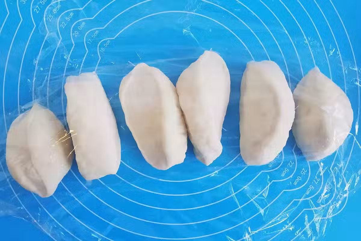 步驟6:排好氣的麵糰,平均分成6等份。蓋上保鮮膜,靜置10分鐘左右。