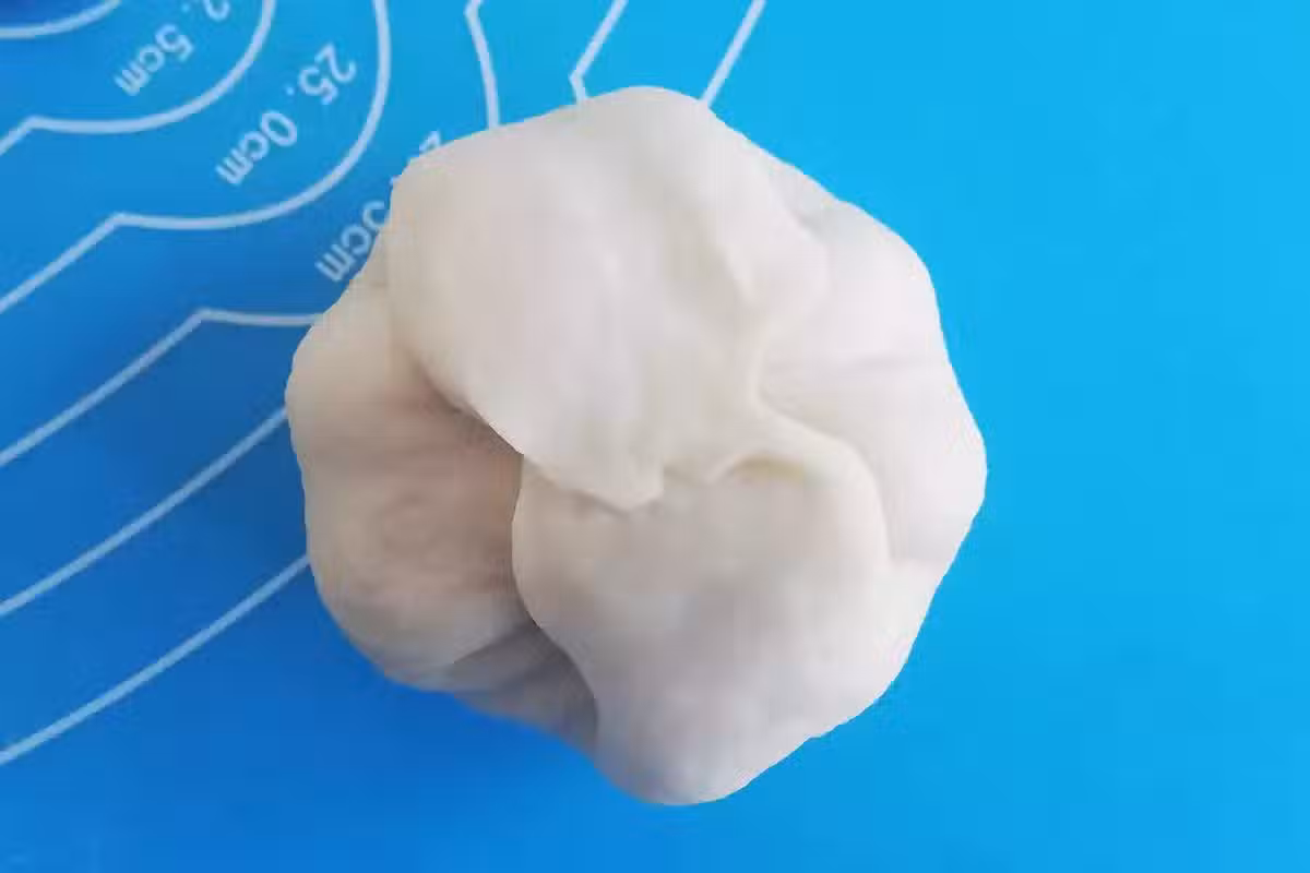 步驟12:這樣就完成了麵糰包餡的收口,為了防止開口,可以再縫合處再輕輕捏一捏。
