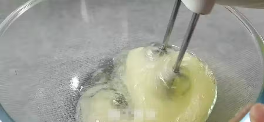 2.放蛋黃的碗中加入60克味道淡一點的食用油,玉米油、大豆油、葵花籽油都可以,再加入240克優酪乳,然後用打蛋器攪拌均勻。