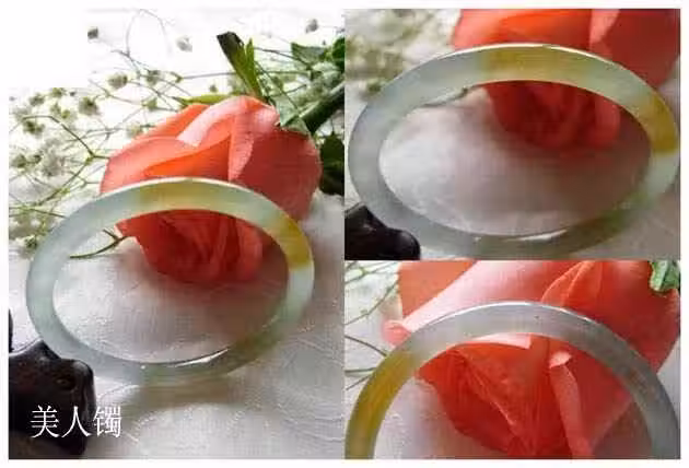五、北工方鐲:很多北地的鐲子,講究大氣,工上常用方型稜角,都來自北方,暫時通通歸為方鐲。1、內圈圓,外圈圓,條杆是矩形的。2、內圈圓,外圈八邊形,條杆也是類似矩形的。3、竹鐲,這個是在將鐲子刻成竹子形狀,有竹枝、竹葉和竹節做裝飾,如果將一管竹子彎成一圈,繞在手腕上。南方也做這種竹子,但是往往做成圓的,但是北方常在竹節處做出稜角,可做八節(就是八邊型)、九節(九邊形)和十節(十邊形)。一般年紀較大的女性佩帶,節同女子守節。北工竹節鐲常用白地青的,講究「清白有節」。