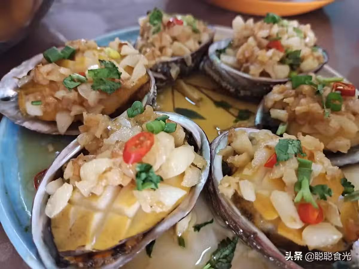 4、把炒好的蒜蓉醬放在鮑魚上面,上蒸鍋,水開後蒸10分鐘。最後出鍋放點香菜末就可以了。