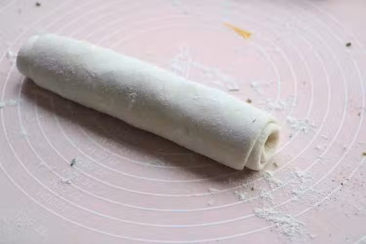 5、然後切成2厘米厚度的小段,切好之後給它稍微整形一下,使它變得更好圓潤好看。放在面板上靜置10分鐘,二次發酵;