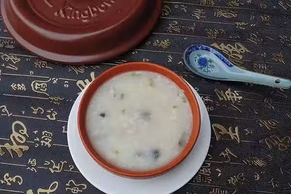1. 準備好坤博砂鍋、米飯、豬肉、皮蛋、蔥、姜。