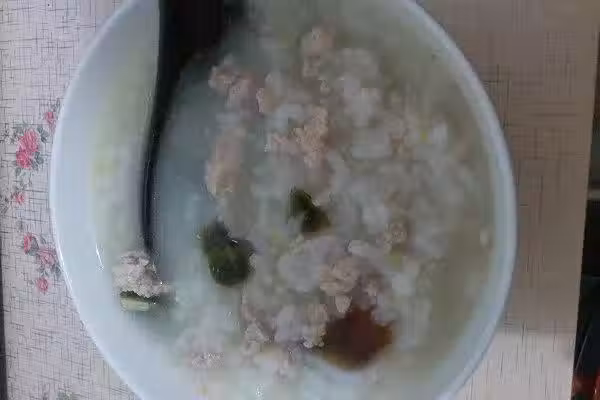 大米一小碗.皮蛋2個.瘦肉5元.姜沫一勺、鹽適量