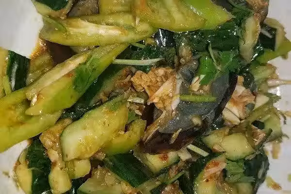 大蒜適量.黃瓜一根.皮蛋2個.香菜一根.青椒一個、豆瓣醬適量、耗油適量、生抽適量、香油適量