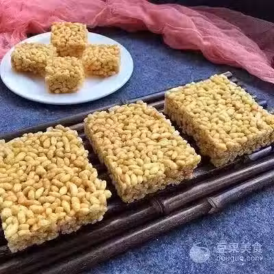 16、待還有米花糖餘溫,用刀切成小塊即可。