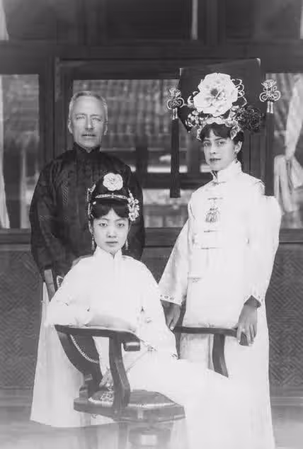 左為莊士敦,中為婉容,右為婉容的家庭教師伊莎貝。