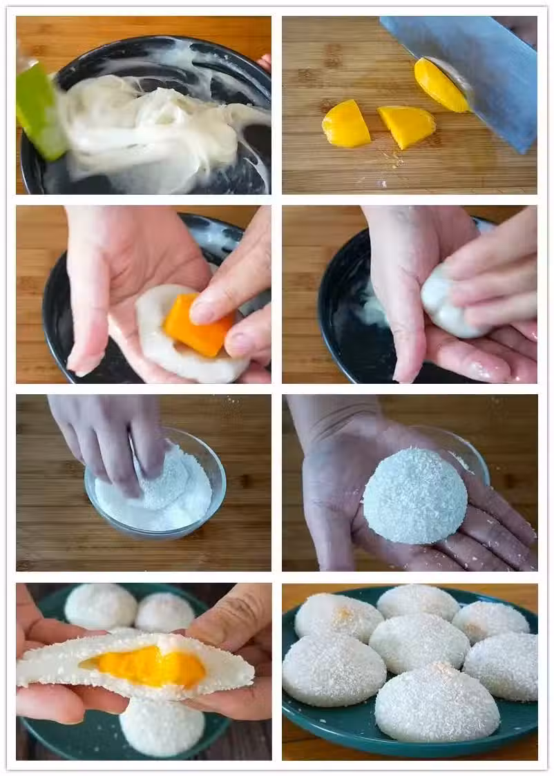 第十三步:再次用手團圓,一個芒果糯米糍的生胚就完成了