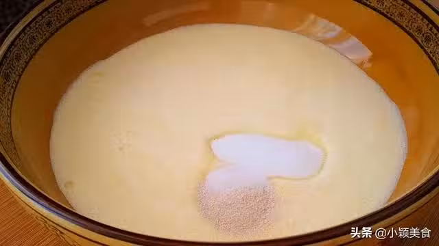 2.打好的米漿里加4克酵母粉,1勺白糖,2克鹽攪拌均勻。