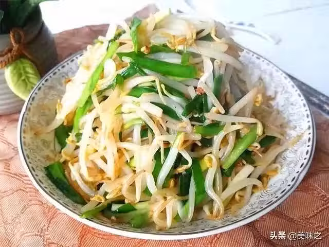 韭菜150g、綠豆芽100g、油適量、食鹽適量。