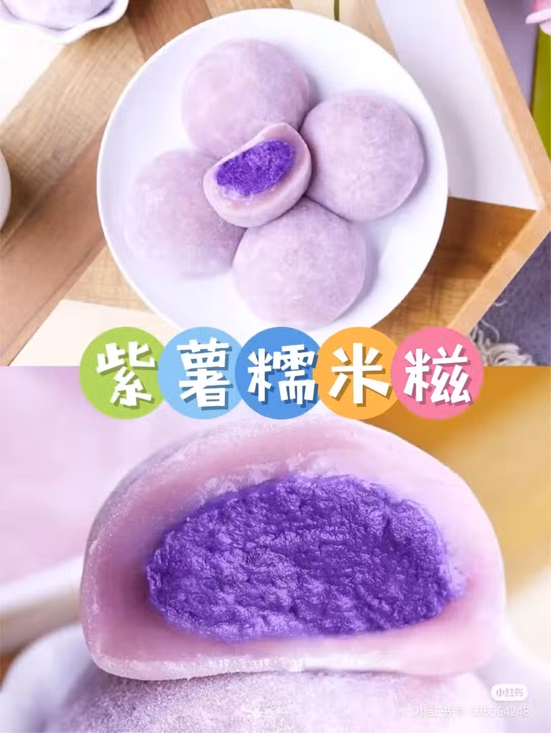 不用椰蓉,不用淡奶油,更不加色素,就用最最簡單的材料,做一個淡紫色的紫薯變色糯米糍。