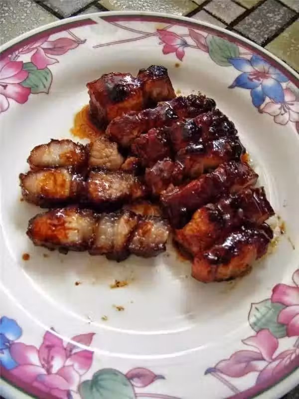 記得兒子小時候每回帶他到燒肉檔吃燒雞飯時,他總會要求我向檔主多要一小碗的叉燒汁讓他澆在白飯上(不是沾叉燒吃),這樣他才會開心地眯著一雙小眼睛(兒子小時候胖得連脖子也看不見),連扒兩碗飯才停口~兒子,待老媽到了東京後再給你製作新鮮的【椰糖叉燒】!