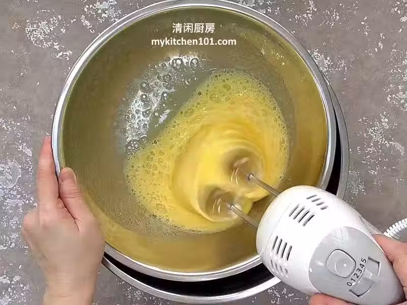 7 蛋糊已經濃稠了 (用打蛋器滴下的蛋糊畫的「8」字可以清晰保持一段時間不消失)。