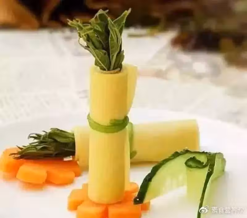 8、依次把所有的豆皮卷都做好,碼在碟子內,為了美觀也可以切一些胡蘿蔔花作為點綴。