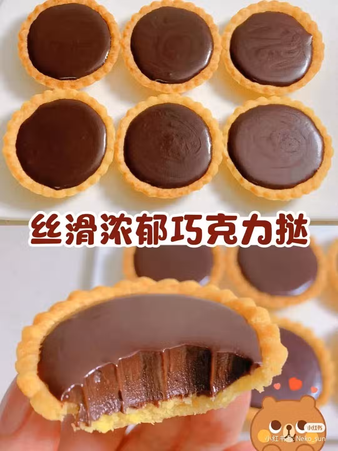 今日份甜品來啦今天做了我超愛吃的巧克力撻巧克力控快快看過來撻殼香酥掉渣,配上濃郁絲滑的巧克力,口感絕了!!好吃到停不下來!