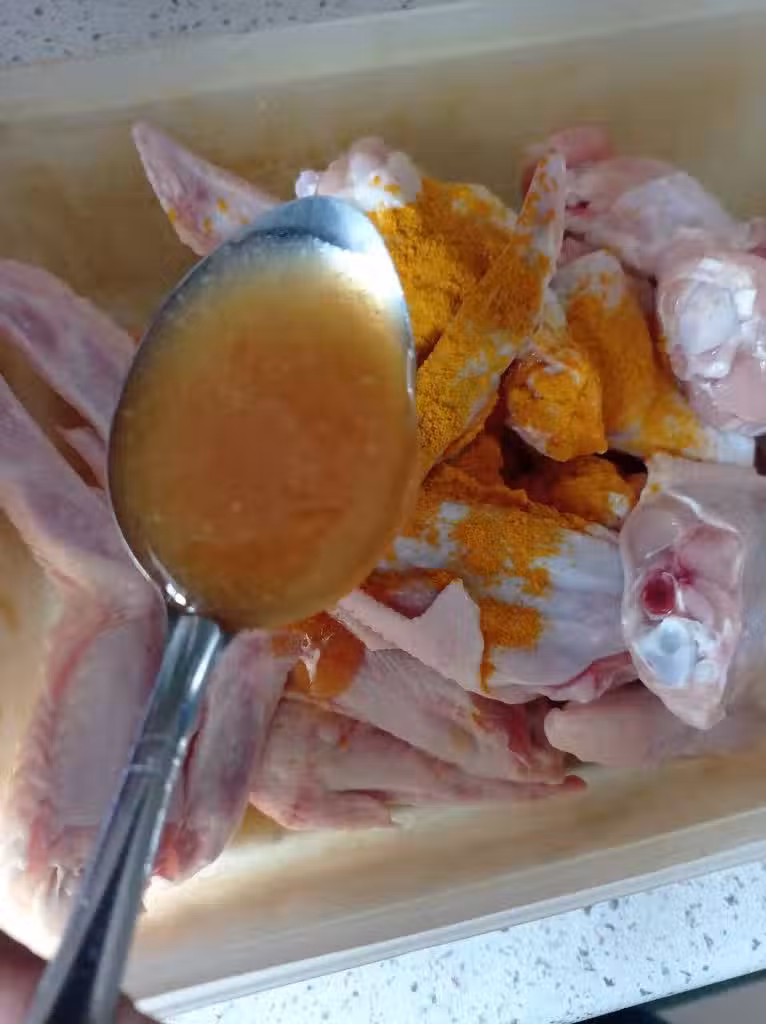 3. 3湯匙maggi濃縮雞湯,然後把雞肉腌一個小時左右。越久越入味,腌過夜更好。放入冰箱。