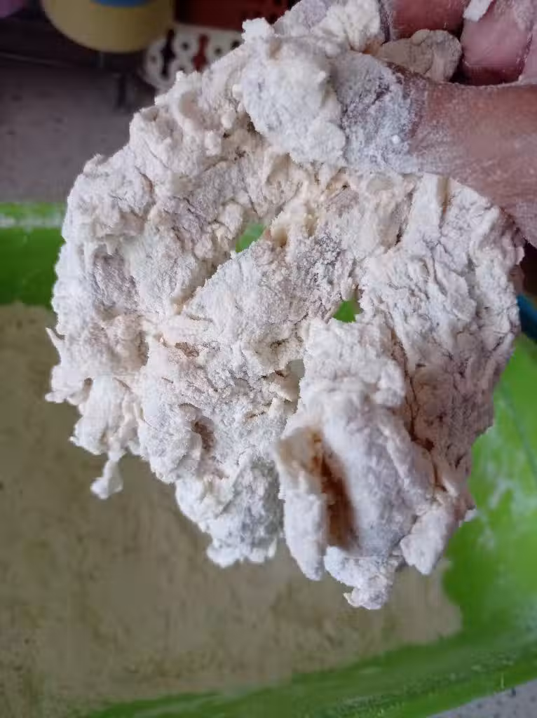 8. 再沾濕,再放到麵粉里,反覆的這麼做多一兩次,增加皮的脆度。