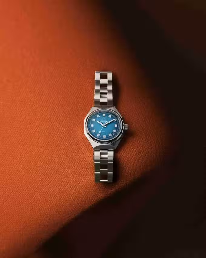 1970 年,繼以堅固的「銀行金庫」表殼搭配大膽錶盤設計的 DEFY 系列腕錶問世後不久,A3690腕錶耀目發布,成為最早採用醒目配色的表款之一。早在 20 世紀 60 年代,真力時就率先引入了色彩鮮明呈現漸變效果的彩色錶盤,且這種錶盤在當時實屬前所未見。為順應不斷變化的時代品味,品牌於 20 世紀 70 年代推出了更具視覺衝擊力的錶盤配色,其中包括 DEFY 系列 A3690 腕錶錶盤採用的熱帶藍綠色以及 DEFY 系列 A3691 腕錶錶盤採用的色調更暖的深紅色。