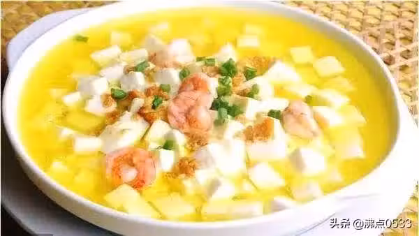 材料:嫩豆腐1塊,鮮蝦仁10隻,香菇6-8朵,雞蛋2個,香蔥適量,鹽,料酒,香油適量。