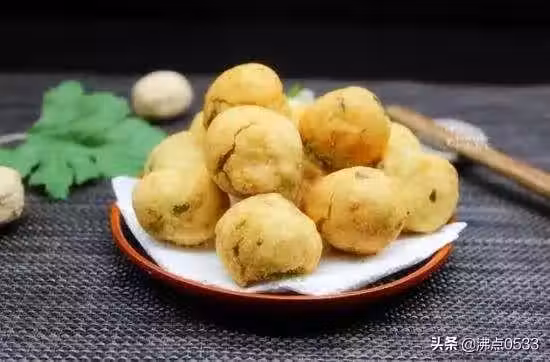 2、中號鍋放大半鍋油,中火燒熱油,用勺舀出大約1.5大匙的蝦肉放左手掌上,用勺子幫助整豆腐蝦球坯,放入熱油里炸至金黃,即可撈出瀝油,趁熱食用。