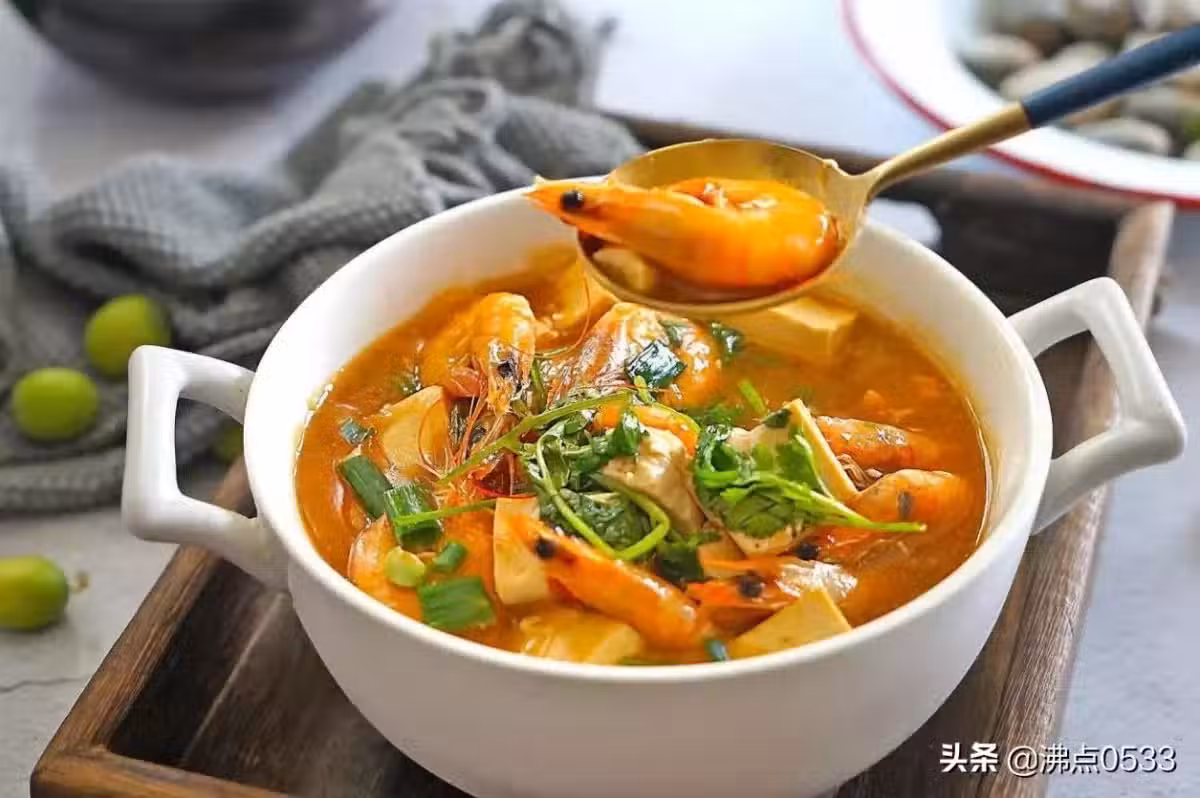材料:鮮蝦6隻,嫩豆腐1塊,醬湯料包1包,鹽糖少許